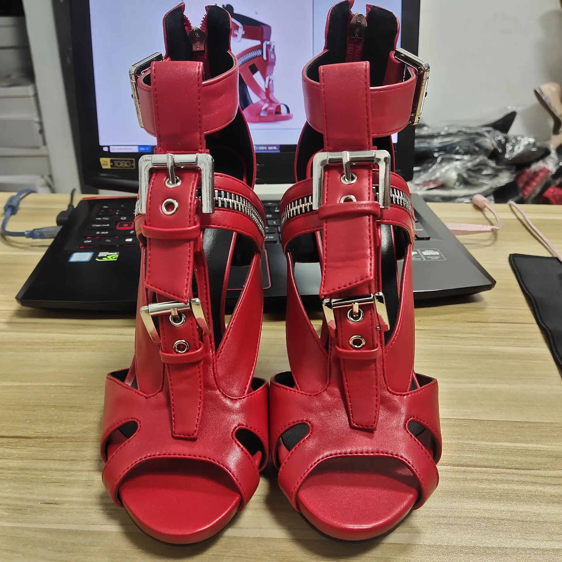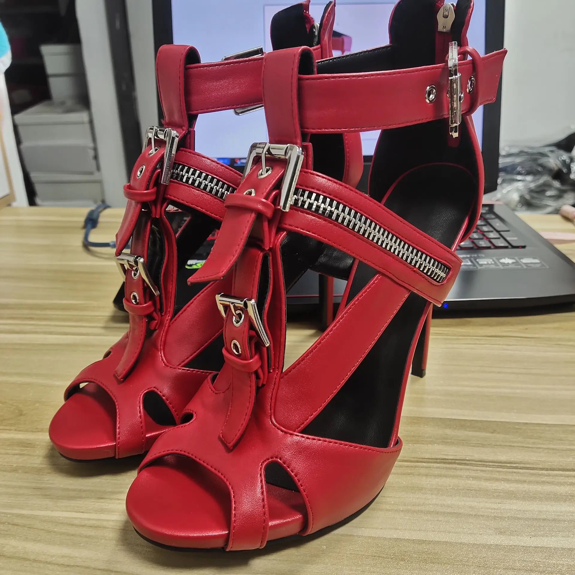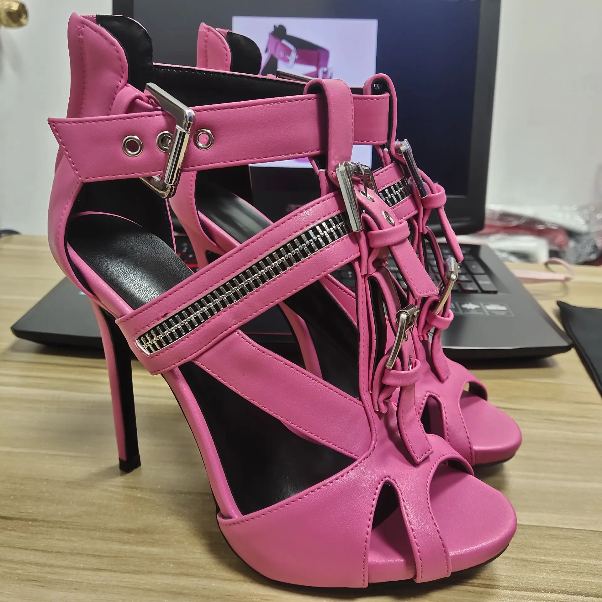 Женские босоножки на высоком каблуке-шпильке с пряжкой и ремешком на щиколотке, пикантные Вечерние туфли на молнии с открытым носком в стиле панк, летние женские сандалии