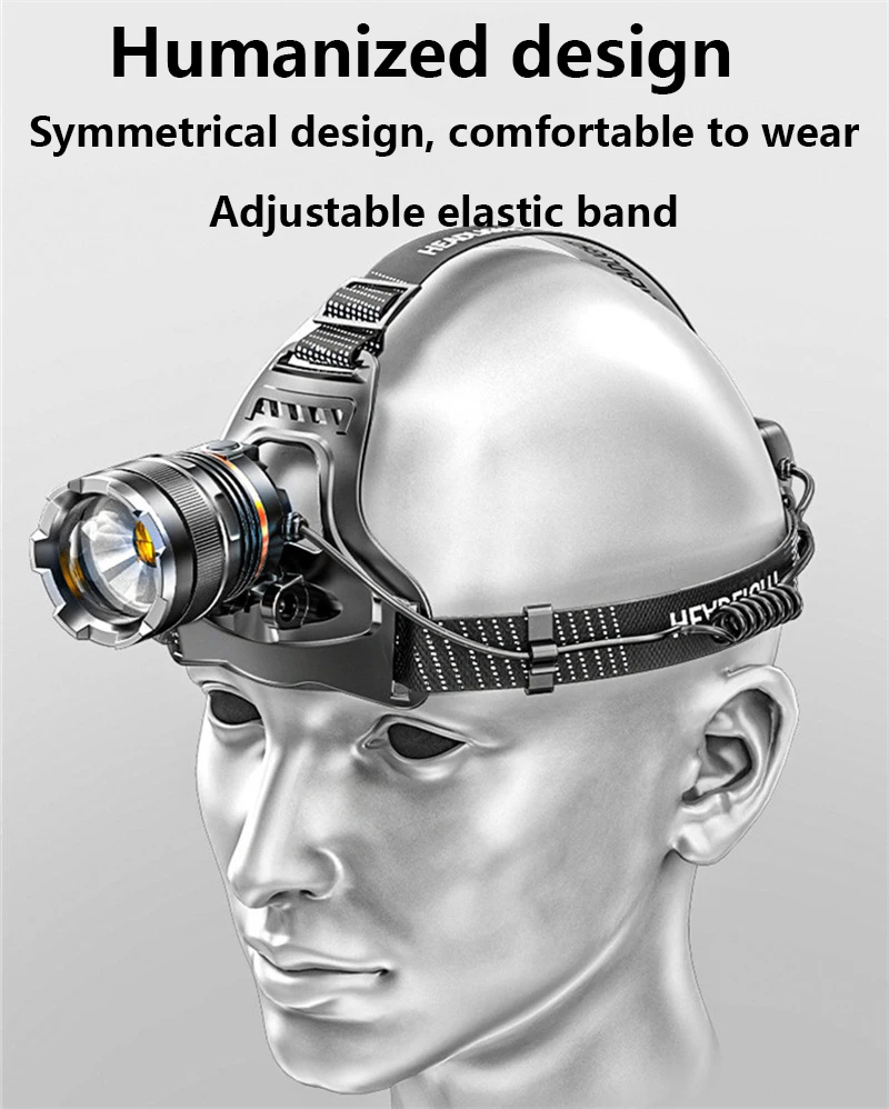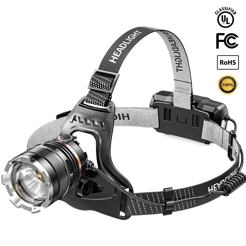 Фонарь налобный с датчиком и зумом, 18650 лм