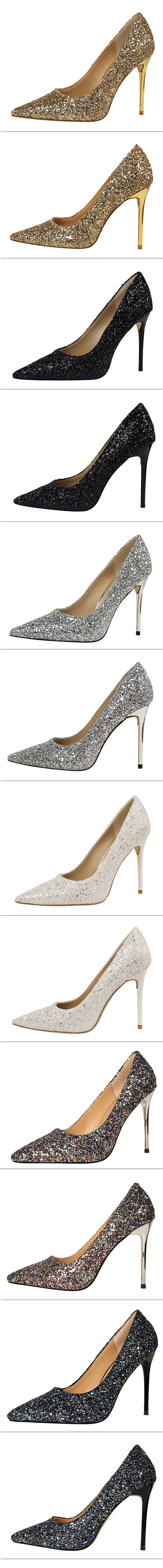 Туфли женские на высоком каблуке, заостренный носок, Блестящие Блес...