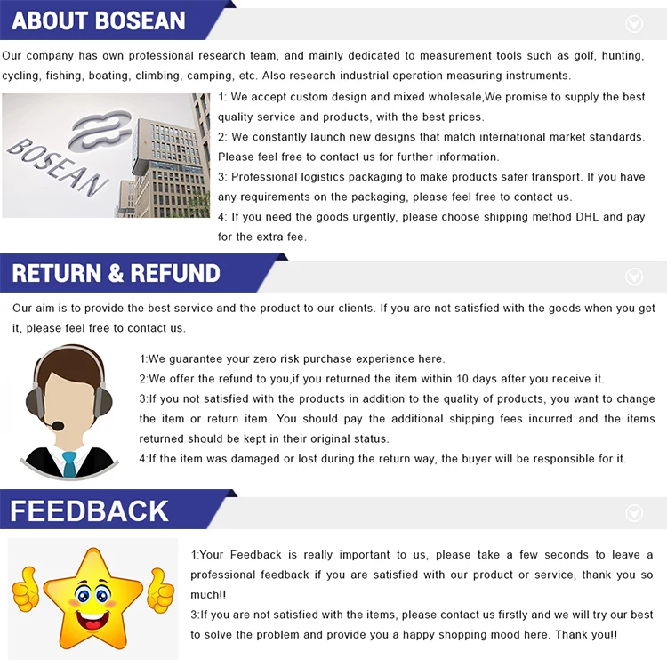 1 * BOSEAN дальномер1 * Прочная переноска Cas1 * Руководство пользователя на английском языке1 * USB кабель для зарядки1 * ремешок на запястье1 * ткань для объектива