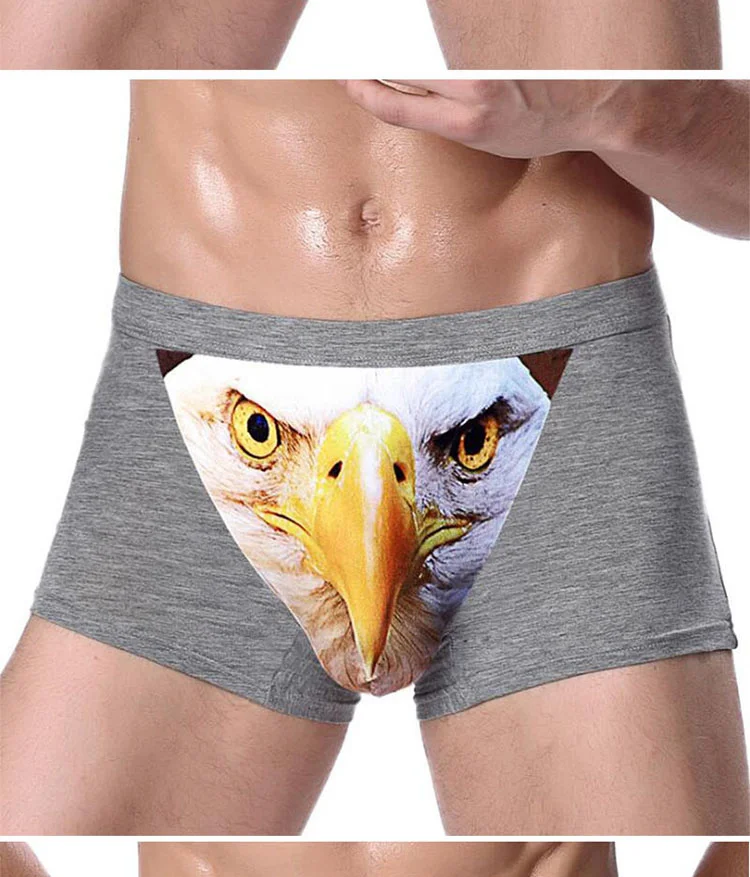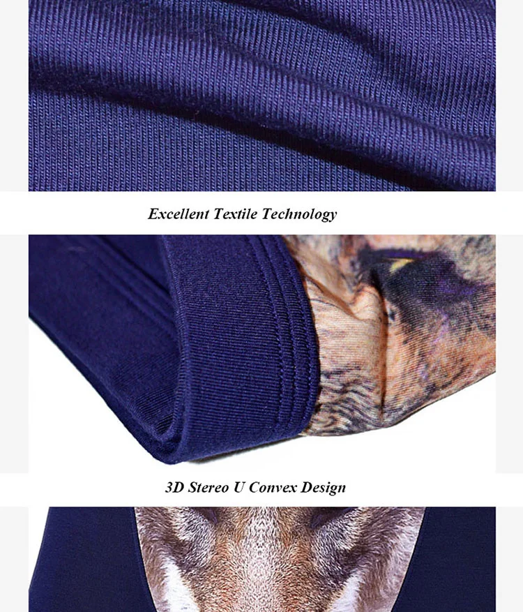 Хлопковые мужские трусы-боксеры, бесшовные трусы со средней талией и волком, длинное мягкое U-Выпуклое нижнее белье с рисунком животных