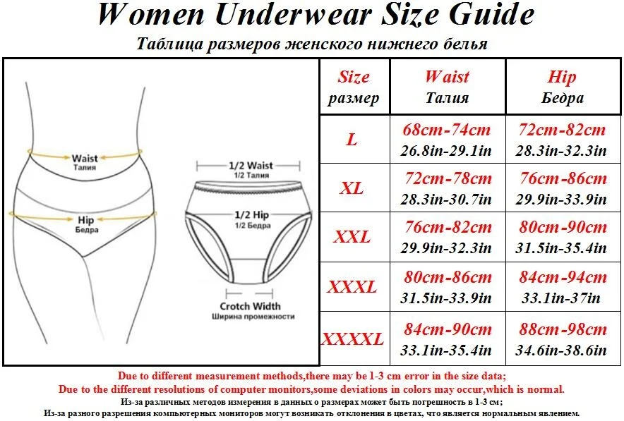 Азиатский размер L: для талии около 68-74 см, бедра около 72-82 смАзиатский размер XL: для талии около 72-78 см, бедра около 76-86 смАзиатский Размер XXL: для талии около 76-82 см, бедра около 80-90 смАзиатский Размер XXXL: для талии около 80-86 см, бедра около 84-94 смАзиатский размер XXXXL: для талии около 84-90 см, бедра около 88-98 смИз-за различных методов измерения может быть погрешность 1-3 см в данных о размере; Из-за различных разрешений компьютерных мониторов могут возникать некоторые отклонения в цветах, что является нормальным.