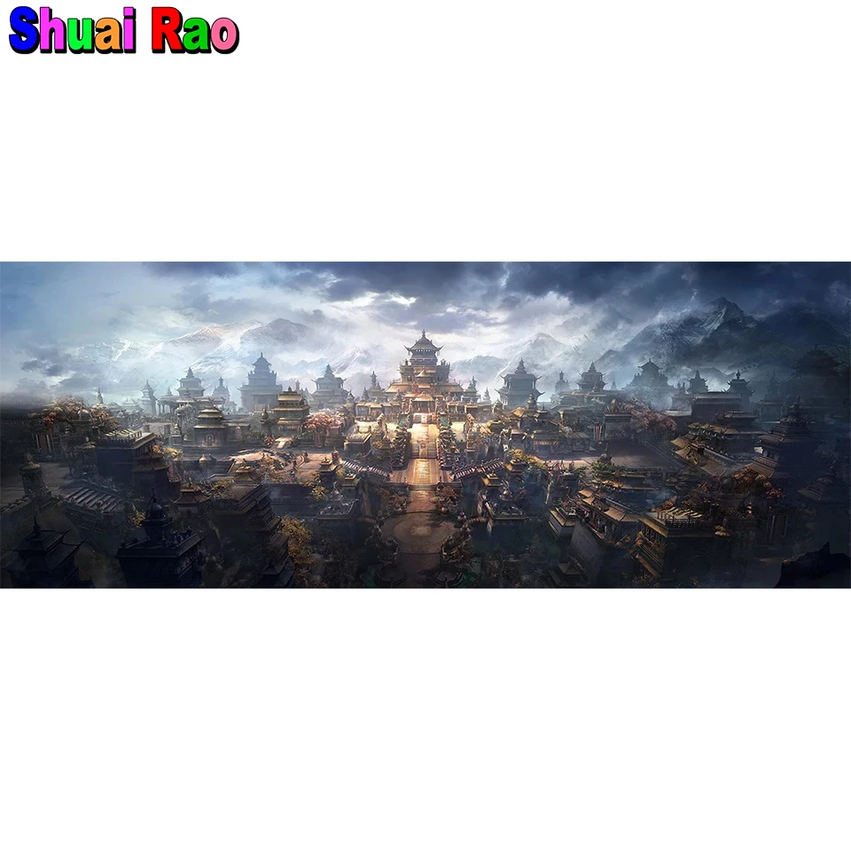Китайская фантазия город панорама полная дрель Алмазная вышивка 5D мозаика пейзаж Сделай Сам Алмазная Живопись Вышивка крестом домашний декор