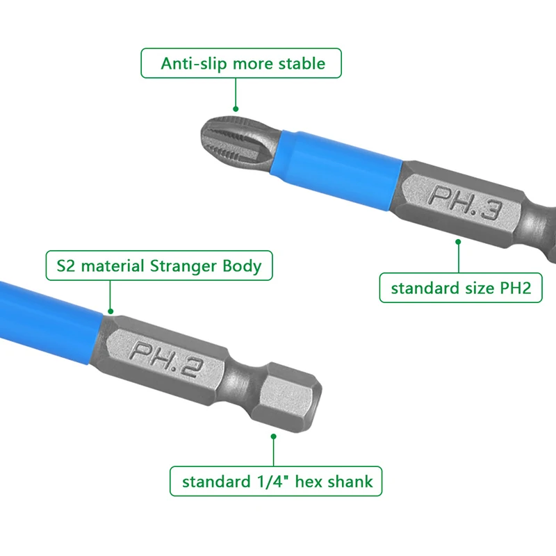 Набор нескользящих наконечников для отверток, комплект из 6 магнитных насадок из легированной стали S2, PH1PH2PH3PZ1PZ2PZ3, 50 мм