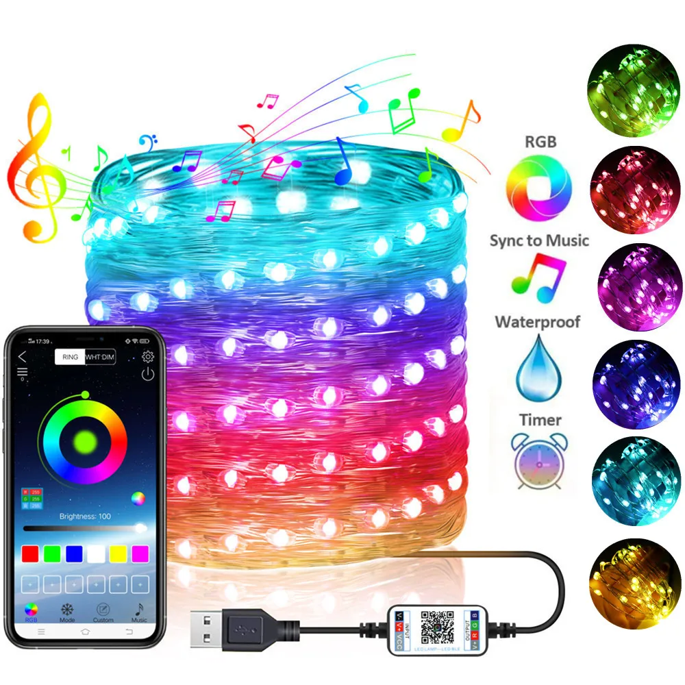 Светодиодная сказочная Гирлянда для украшения рождественской елки, светодиодная USB гирлянда с управлением через приложение и Bluetooth для дома, 2021, спальни, уличное украшение RGB