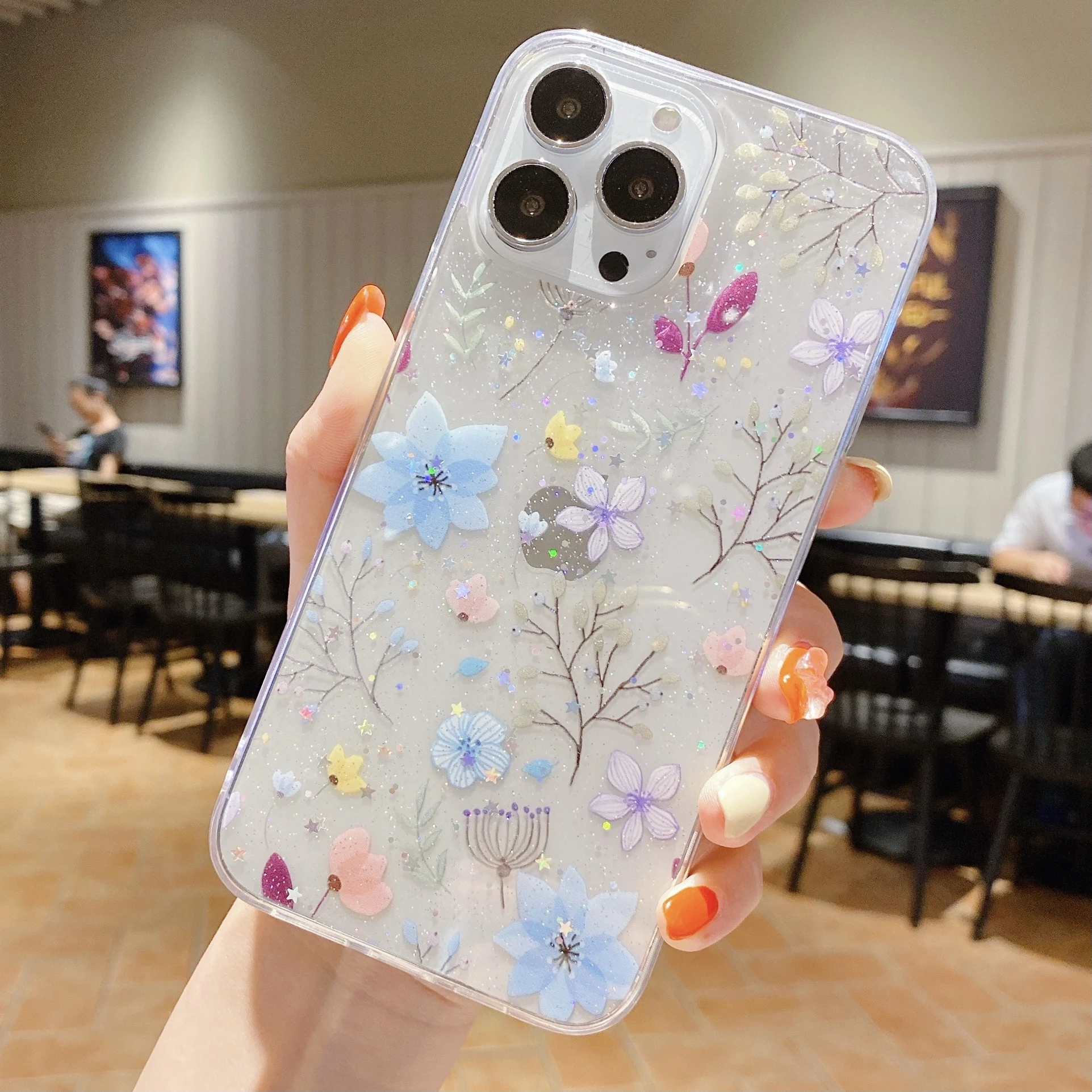 Милый блестящий чехол для телефона с высушенными цветами для iPhone...