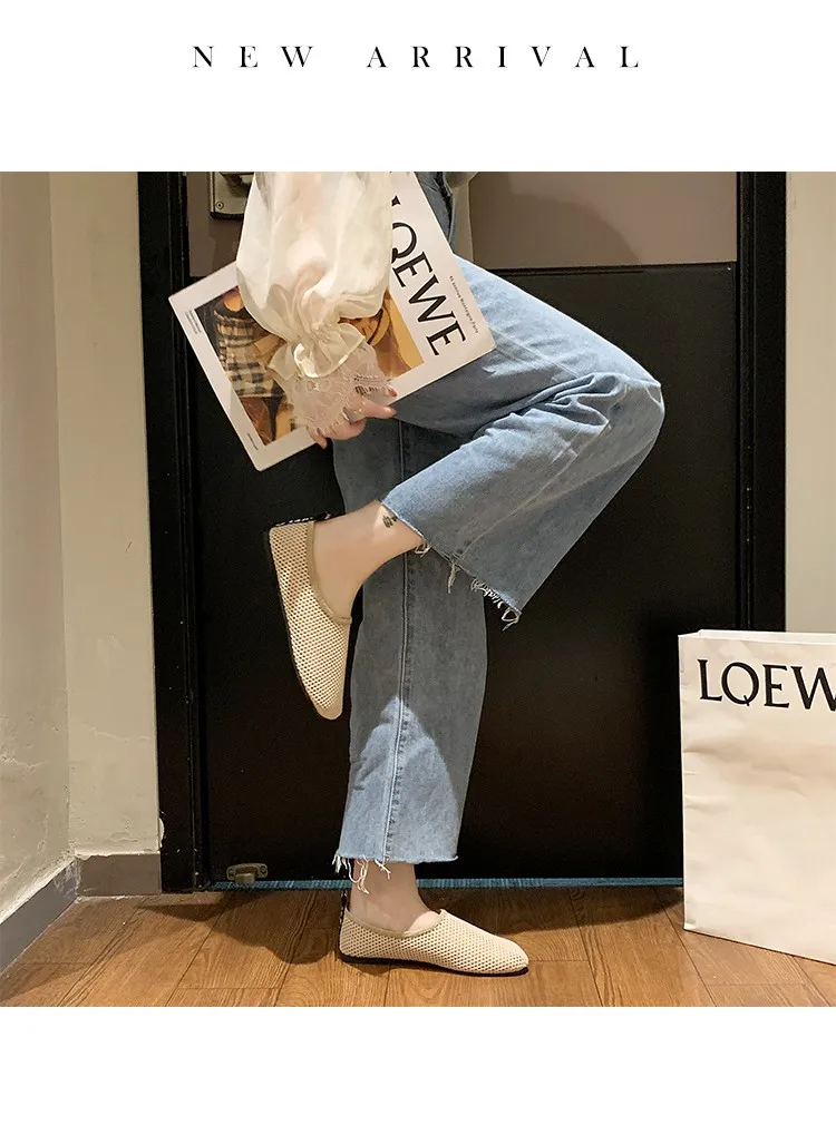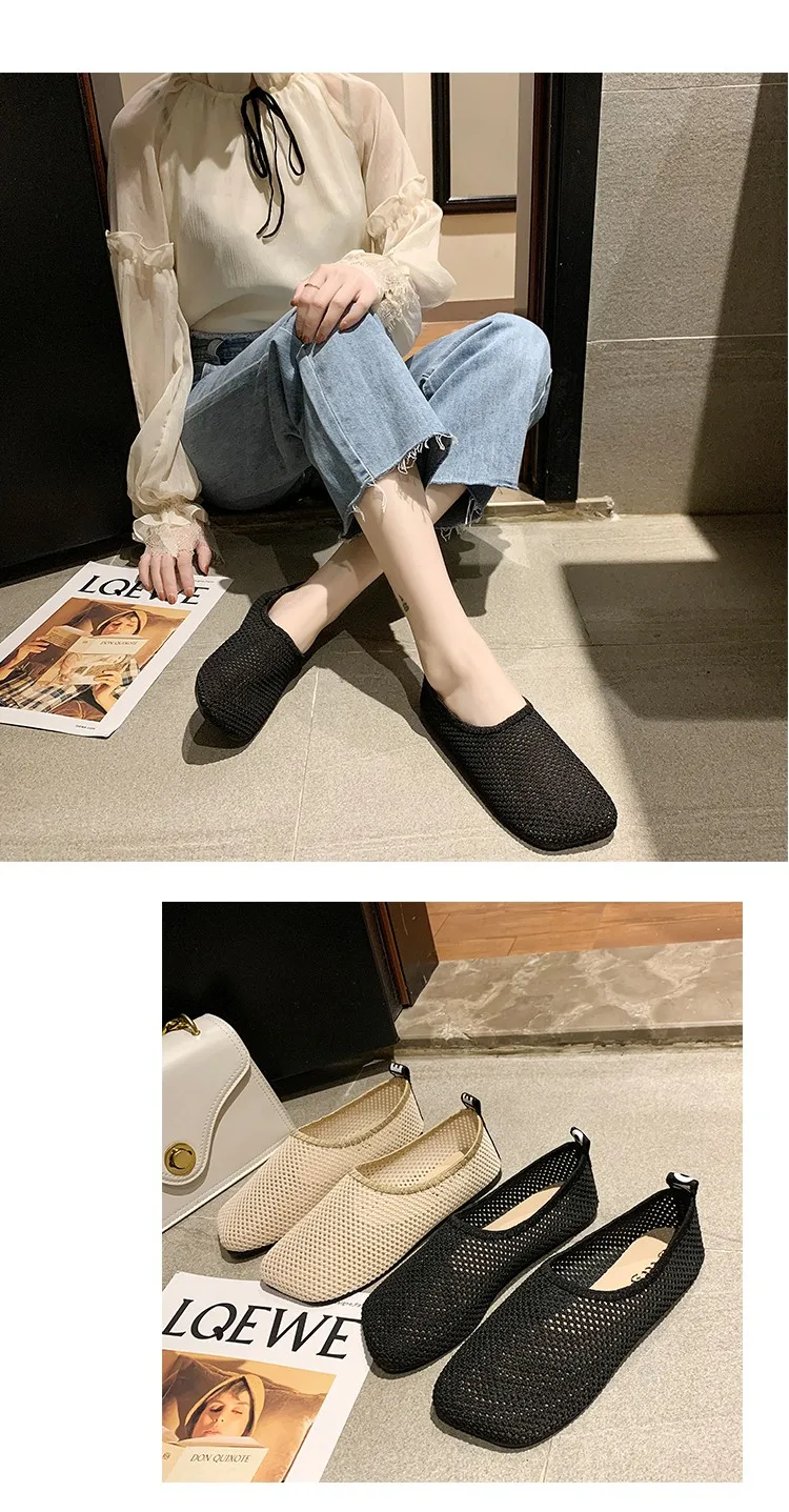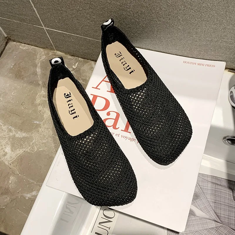 Сандалии женские вязаные, сетчатые дышащие, плоская подошва, повсед...