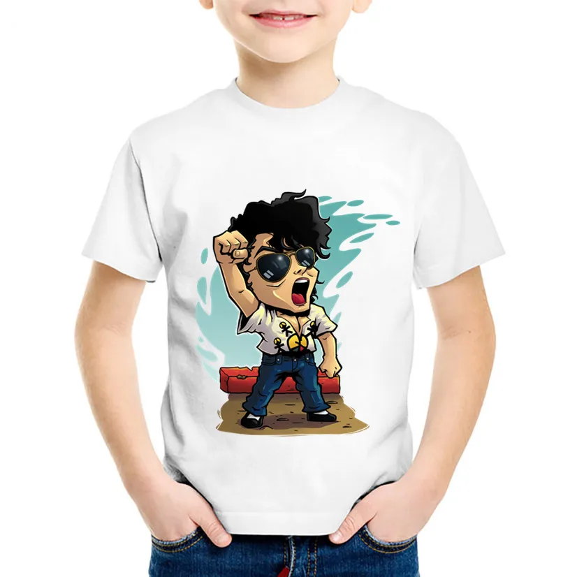 Новинка 2021, детская забавная футболка с рисунком Майкла Джексона, детские летние топы в стиле рок-н-ролл, повседневная одежда для маленьких мальчиков и девочек