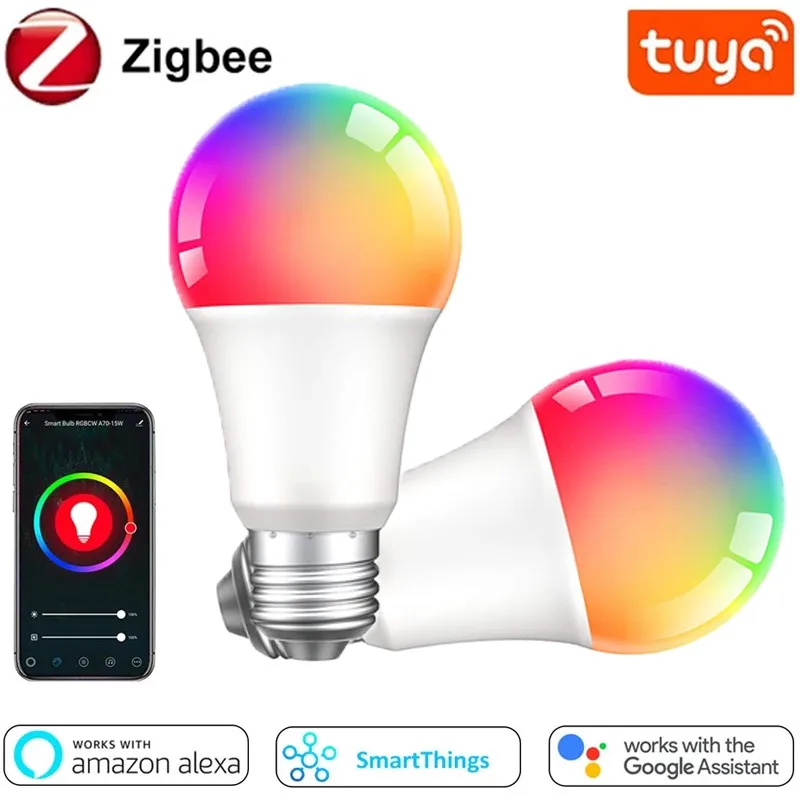 Светодиодная смарт-лампа Tuya Zigbee, 9121518 Вт, E27, 2700-6500 К