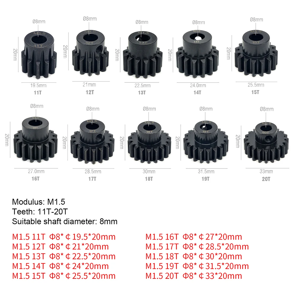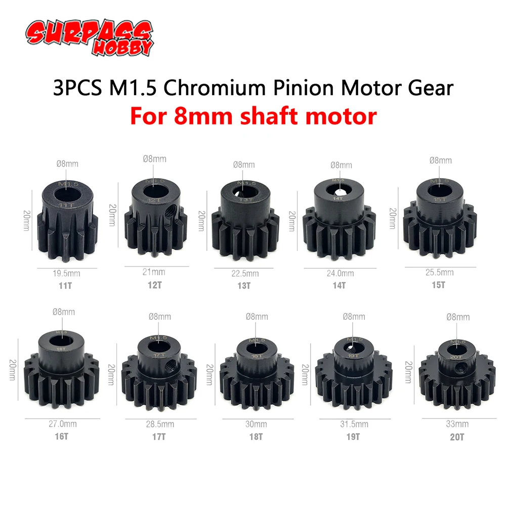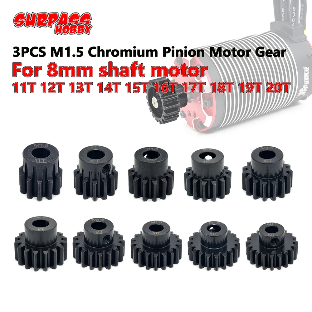 Мотор-редуктор SURPASS HOBBY, хромированная Шестерня M1.5, 8 мм, 11T, 12T, 13T, 14T, 15T, 16T, 17T, 18T, 19T, 20T для радиоуправляемых моделей 16, 15, 3 шт.