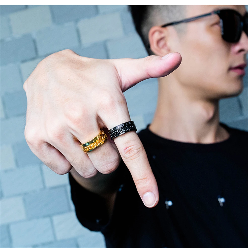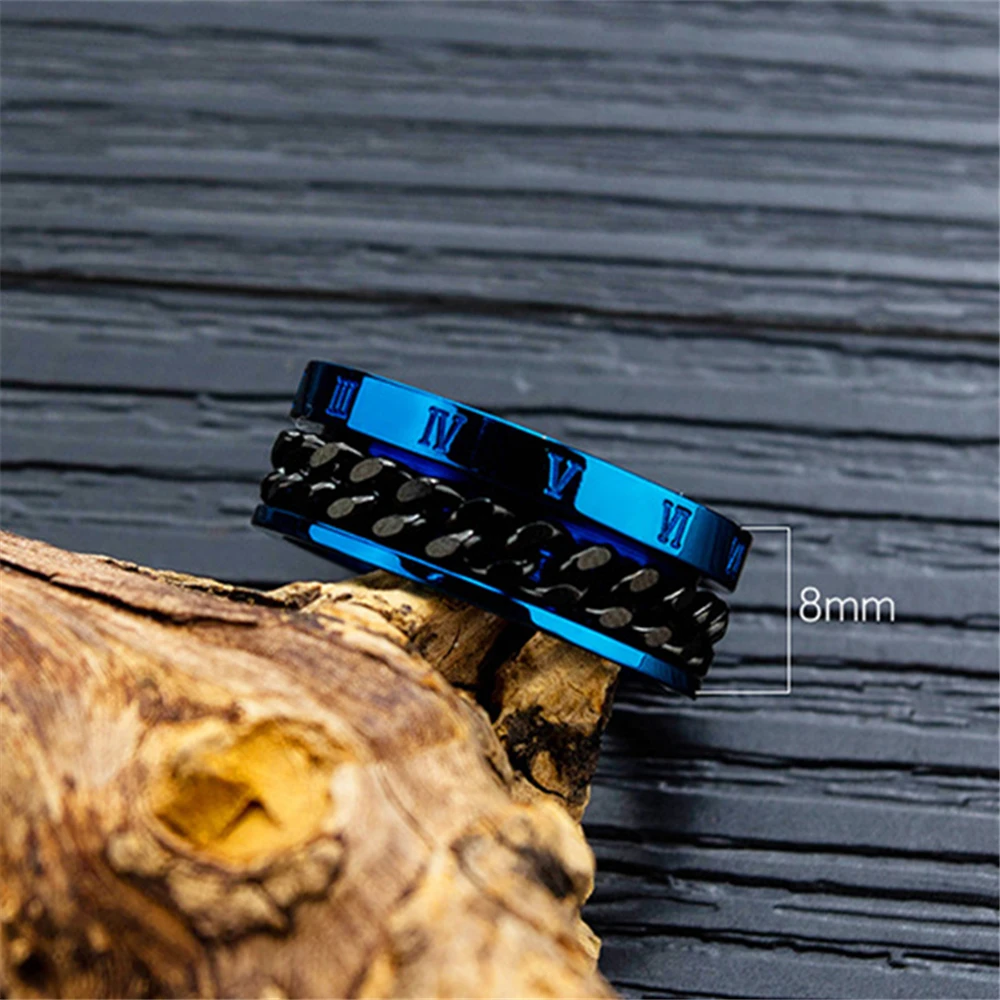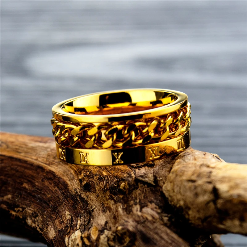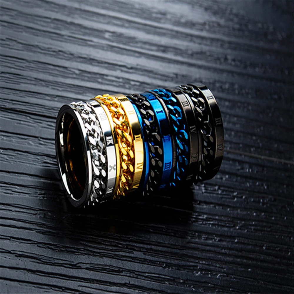 Мужское Винтажное кольцо из нержавеющей стали, золотистое и черное кольцо с римскими цифрами, поворотное кольцо, подарок для мужчин, 2021