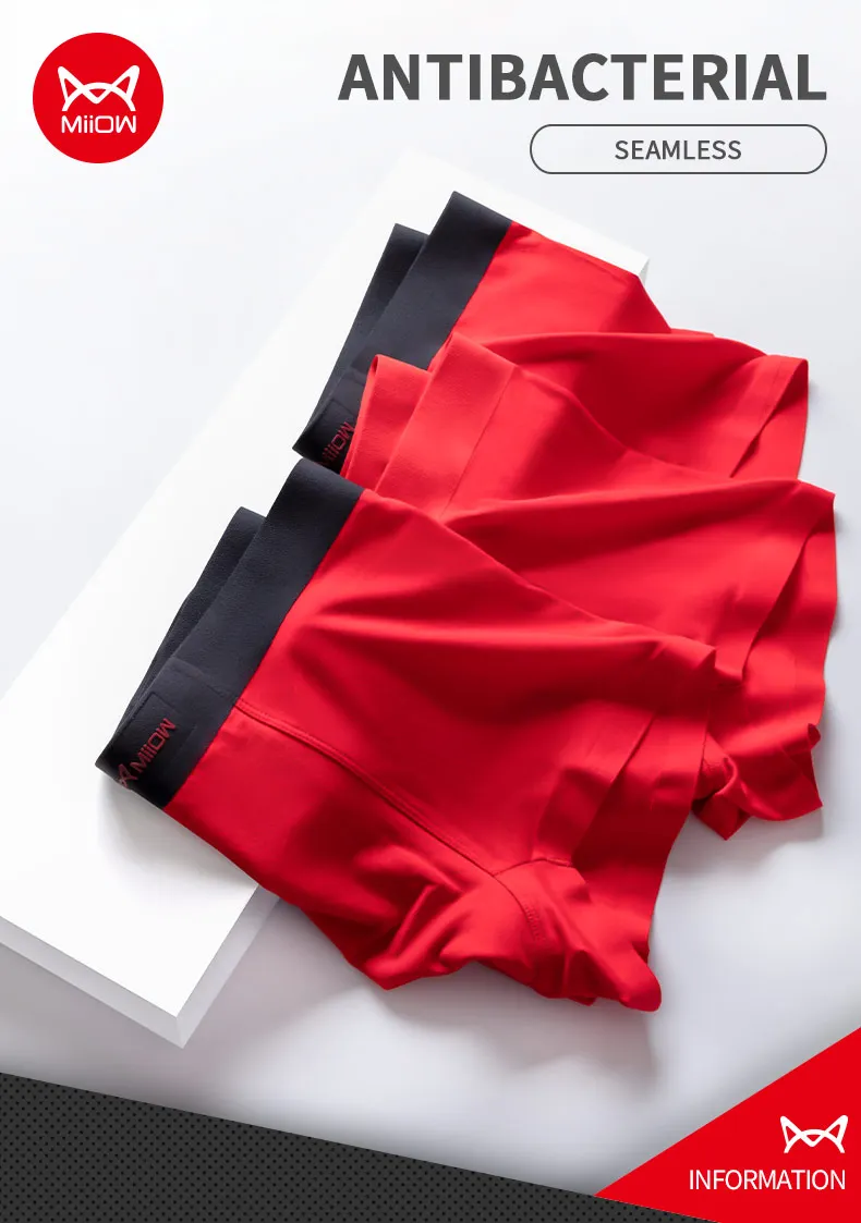 MiiOW 2 шт. Новогоднее красное Мужское нижнее белье из модала, сексуальное мужское нижнее белье, мужские трусы, мужские шорты-боксеры, плавки