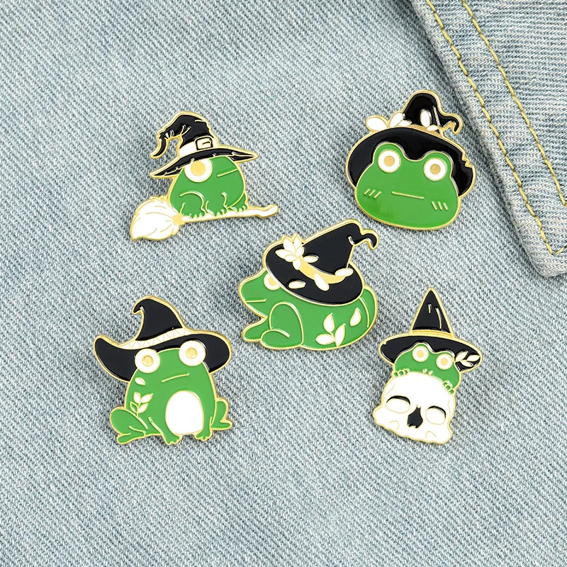 Мультяшные аксессуары ювелирные изделия, забавный волшебник, искусственная кожа, булавка на лацкан, коллекция лягушек, эмалированная булавка, подарок для детей, девушек, оптовая продажа
