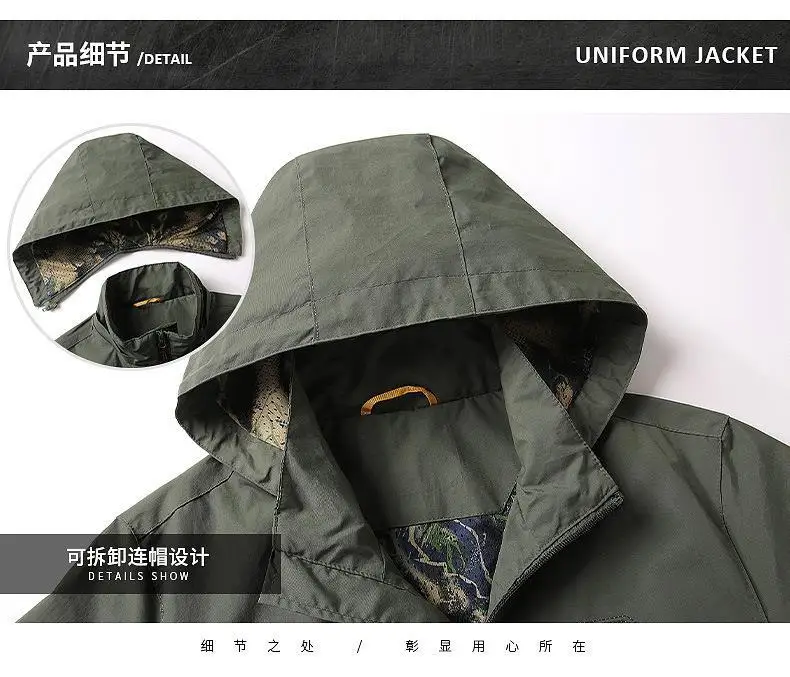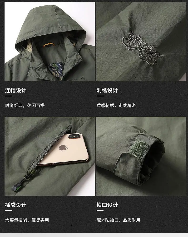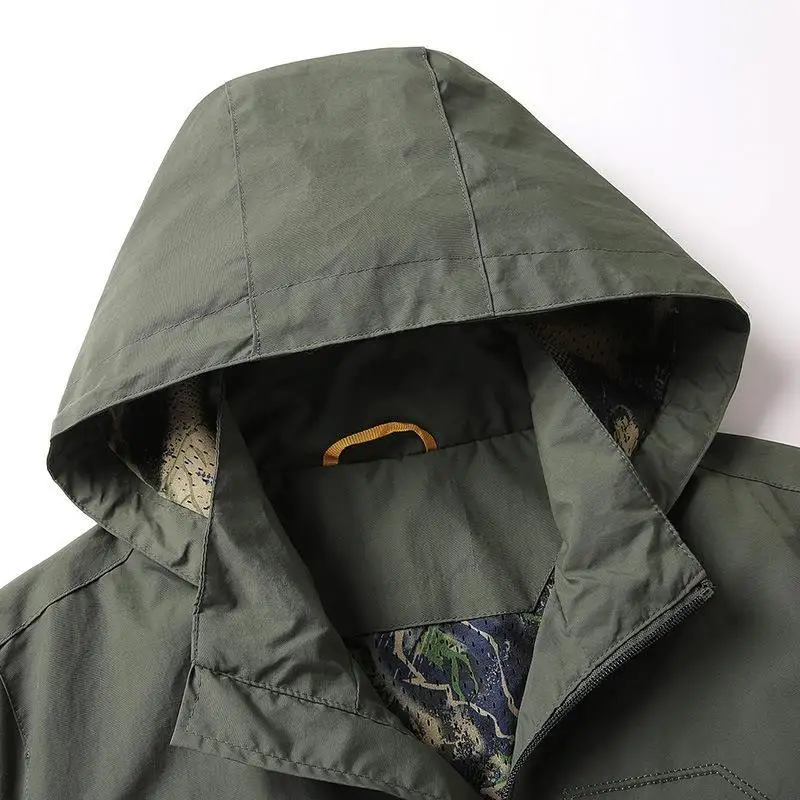 Мужская армейская ветровка, тонкая дышащая куртка на молнии, с капю...