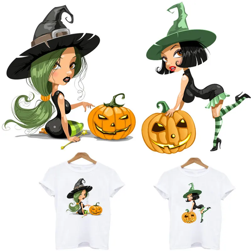 Термоклейкие наклейки на одежду Хэллоуин с симпатичной ведьмой