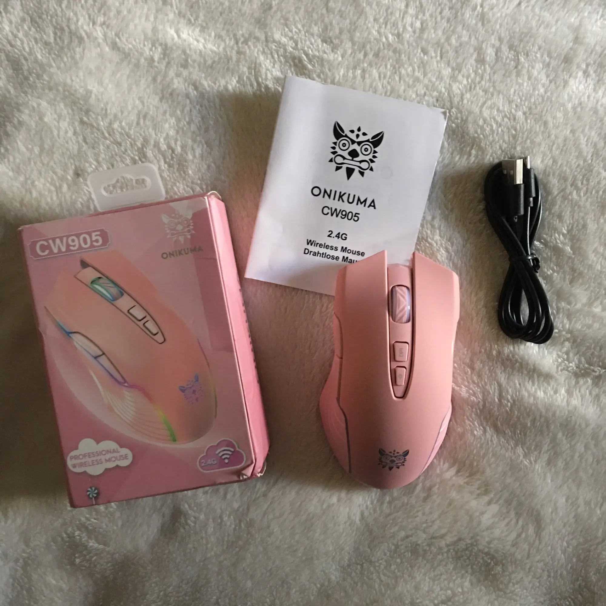 Беспроводная игровая мышь Onikuma CW905, перезаряжаемая компьютерная мышь с RGB-подсветкой, 5 регулируемых DPI до 3600