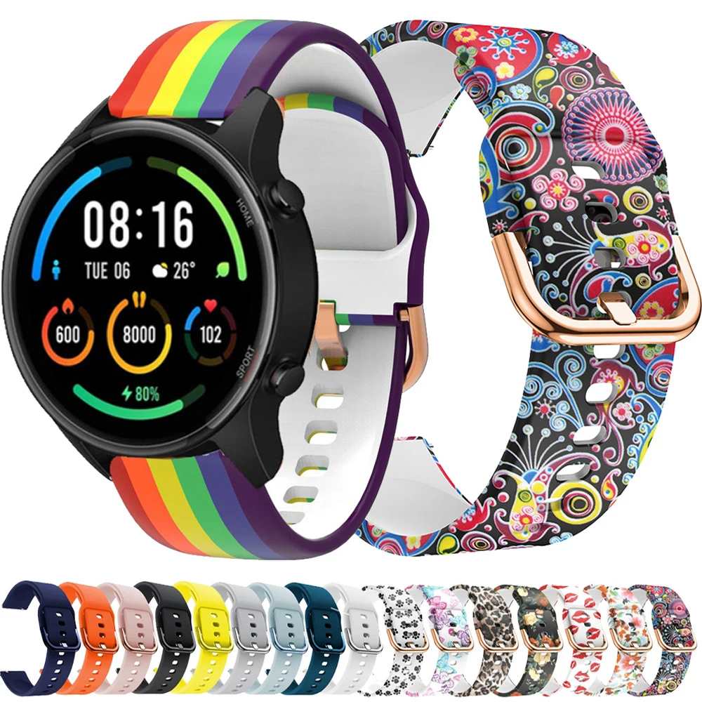 Силиконовый ремешок с принтом для смарт-часов Xiaomi Mi Watch Color 2 S1, спортивный браслет для Amazfit GTR 2 47 мм Stratos 3 2 Correa, 22 мм
