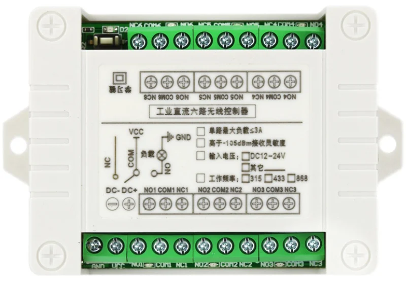 DC 12 В, 24 В, 6 каналов, 6 каналов, RF беспроводной передатчик и приемник переключатель системы дистанционного управления, 315433 МГцГаражные вороталампа