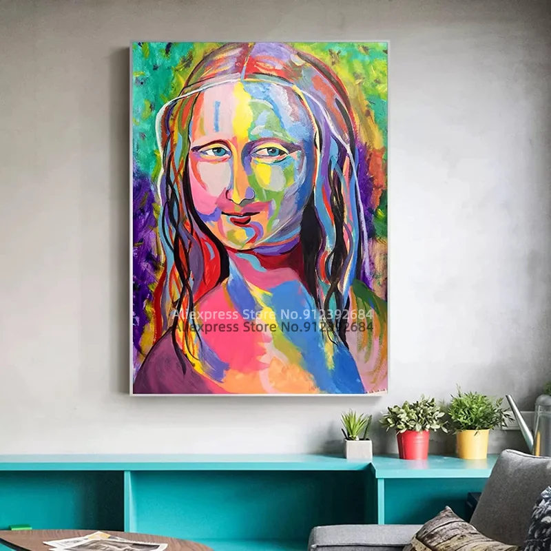Красочная Картина на холсте Мона Лиза, граффити, художественная живопись, печатные плакаты и принты, настенные картины, украшение для дома