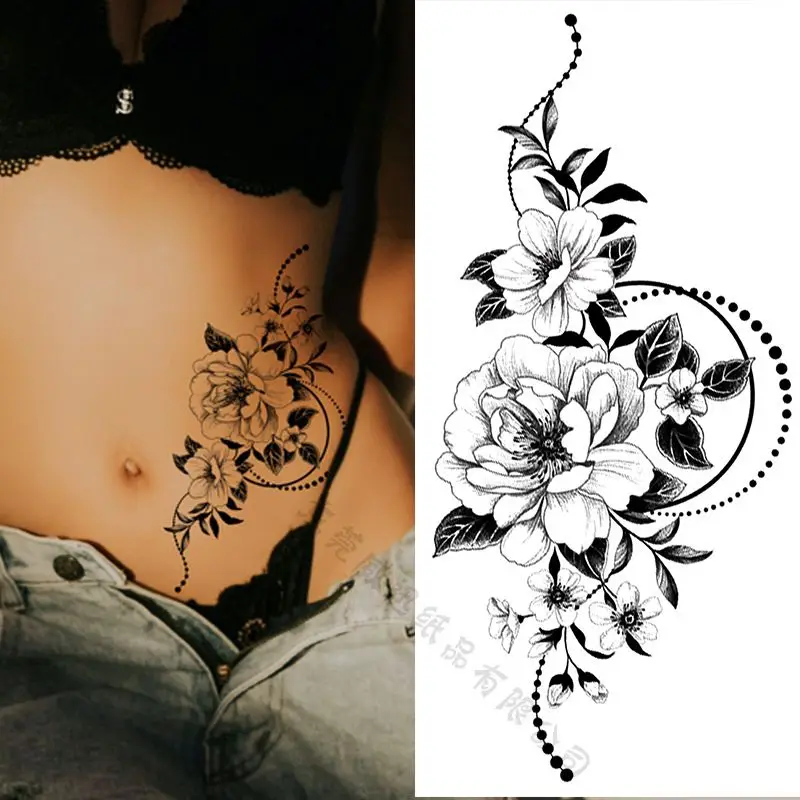 Водостойкая тату-наклейка с цветами, Временная переводная татуировка, художественная наклейка с розой, черно-белыми цветами, тату