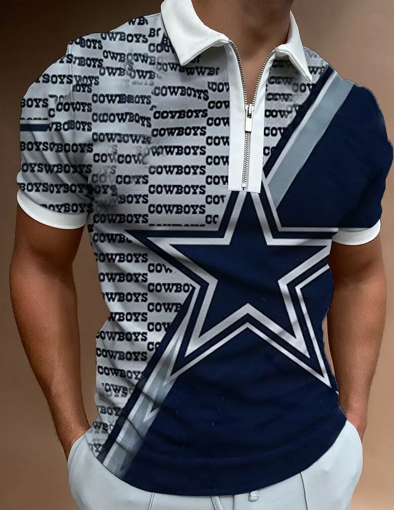 Мужская рубашка-поло с отложным воротником, на молнии, с монографич...