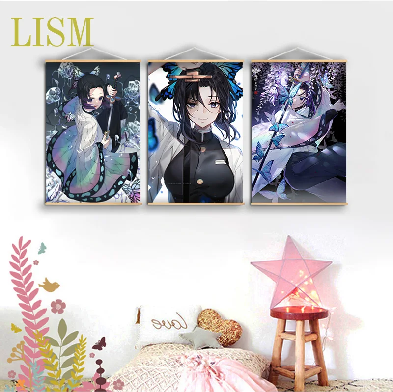 Аниме постер киметасу no Yaiba Kochou Shinobu, картина манга с твердым деревом, Свиток, Картина на холсте