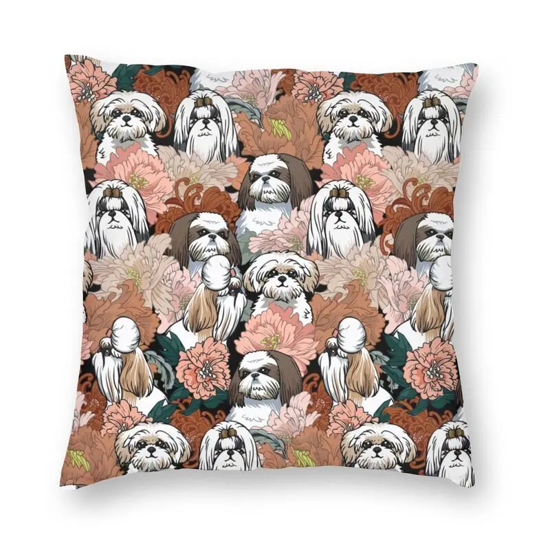 Чехол для подушки Shih Tzu с изображением собак и цветов, домашние ...