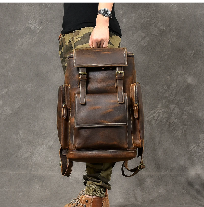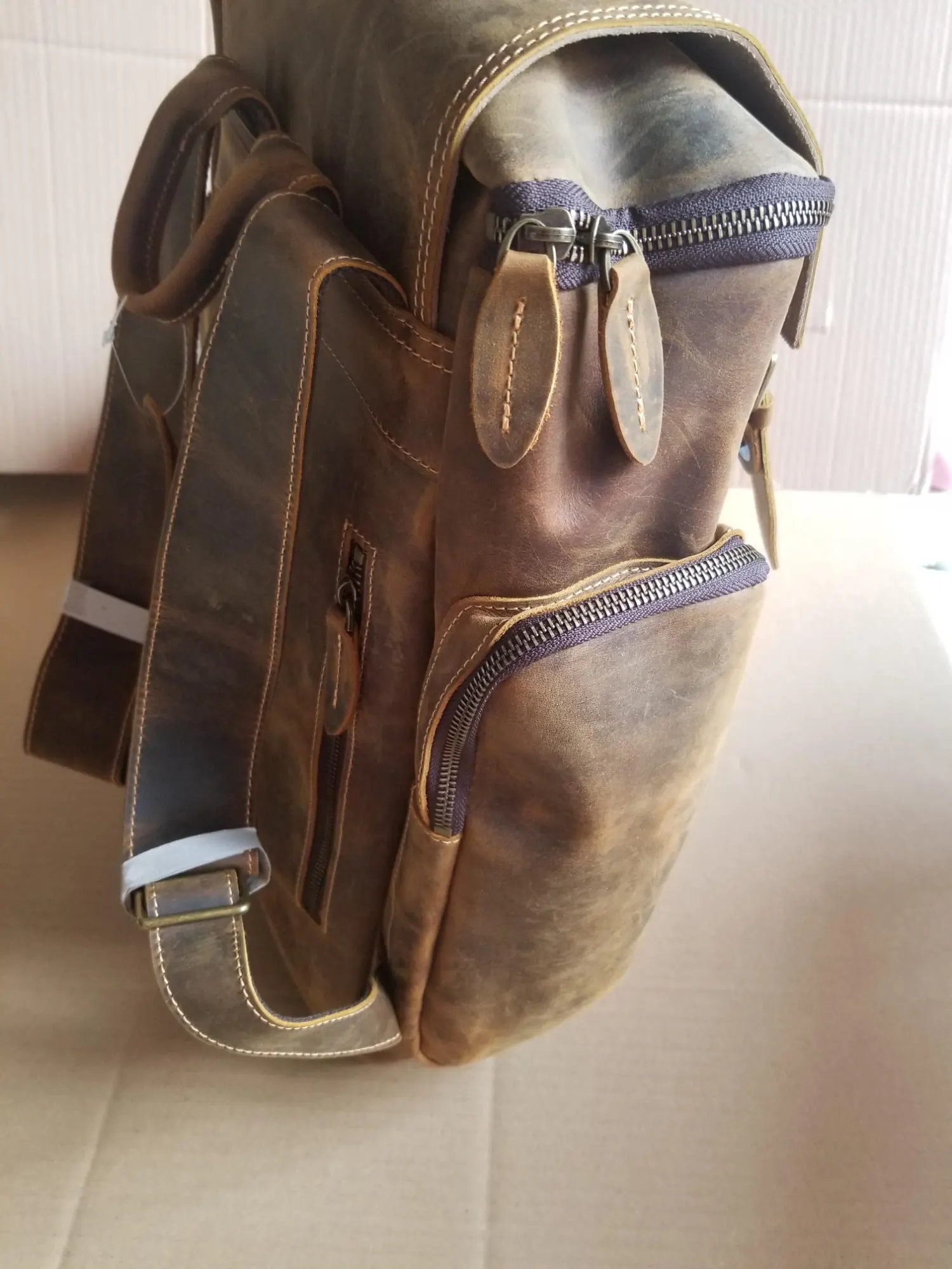 * Качество: мужские ретро рюкзаки изготовлены из кожи Crazy Horse (первый слой воловьей кожи), которая отличается прочностью, высокой прочностью, четкой текстурой, мягкой и деликатной на ощупь, И нелегко сломать. Тонкая текстура проста и благородна, просто соответствует существующему деловому стилю.