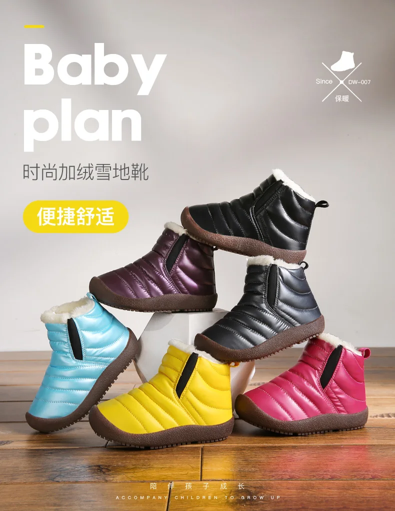 Водонепроницаемые ботинки для мальчиков и девочек, теплые плюшевые ...