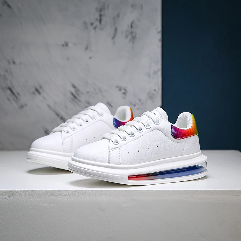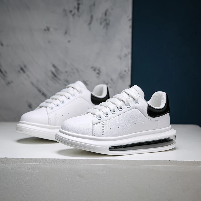 Брендовые детские белые кроссовки на воздушной подушке для мальчиков, кроссовки для скейтборда для девочек, повседневная обувь, Детская Спортивная кожаная обувь для бега