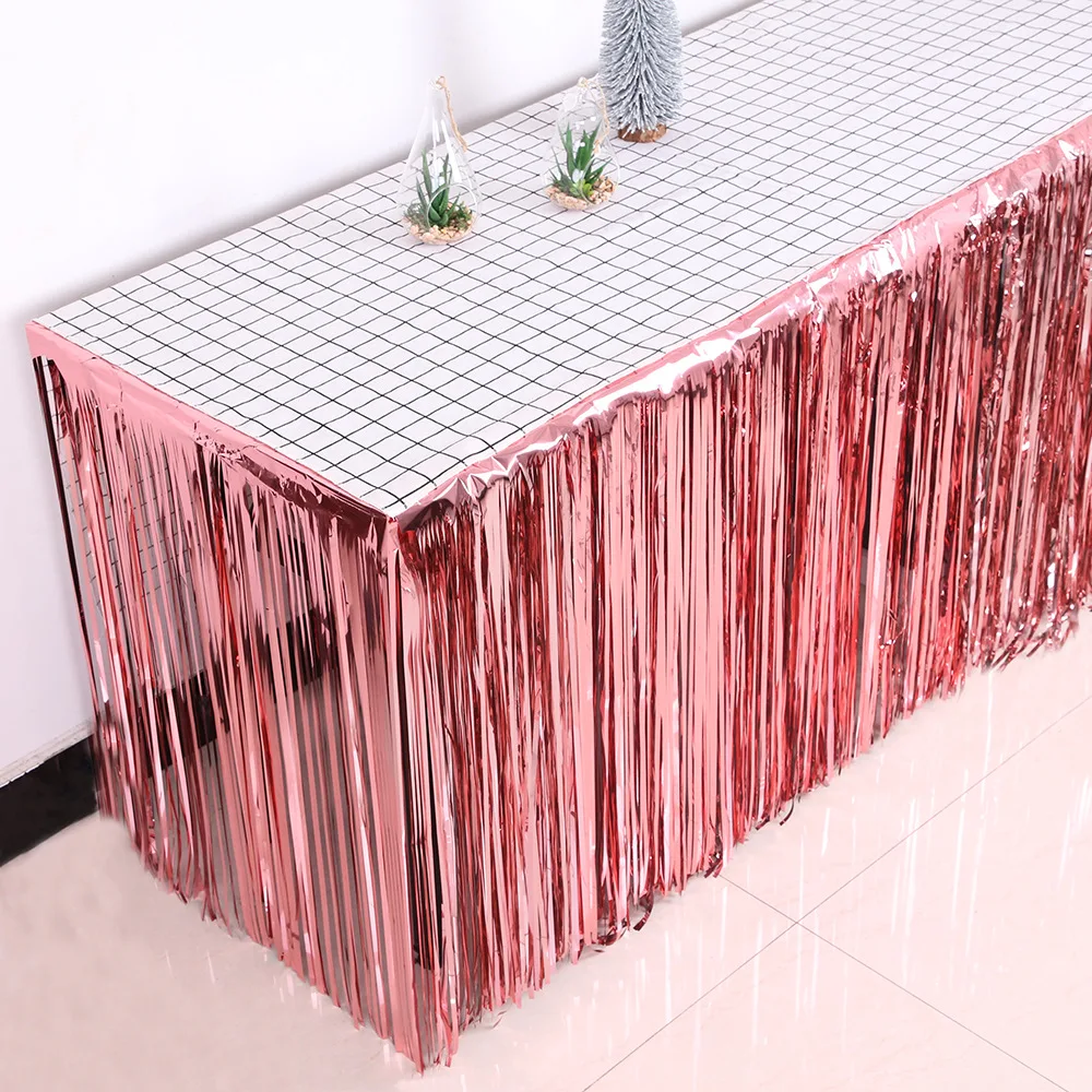 Скатерть из фольги с бахромой, занавеска синего, золотого, розового цвета, блестящая металлическая Мишура для вечеринок, дней рождения, торжеств, украшения для свадьбы