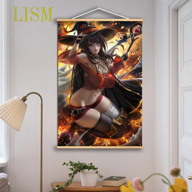 Коносуба! Megumin аниме постер манга картина с твердым деревом висячая прокрутка холст живопись