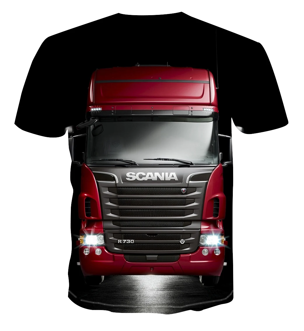 Мужская и женская футболка с круглым вырезом и коротким рукавом, Повседневная трехмерная футболка в стиле Харадзюку с изображением тяжелых грузовиков, Новинка