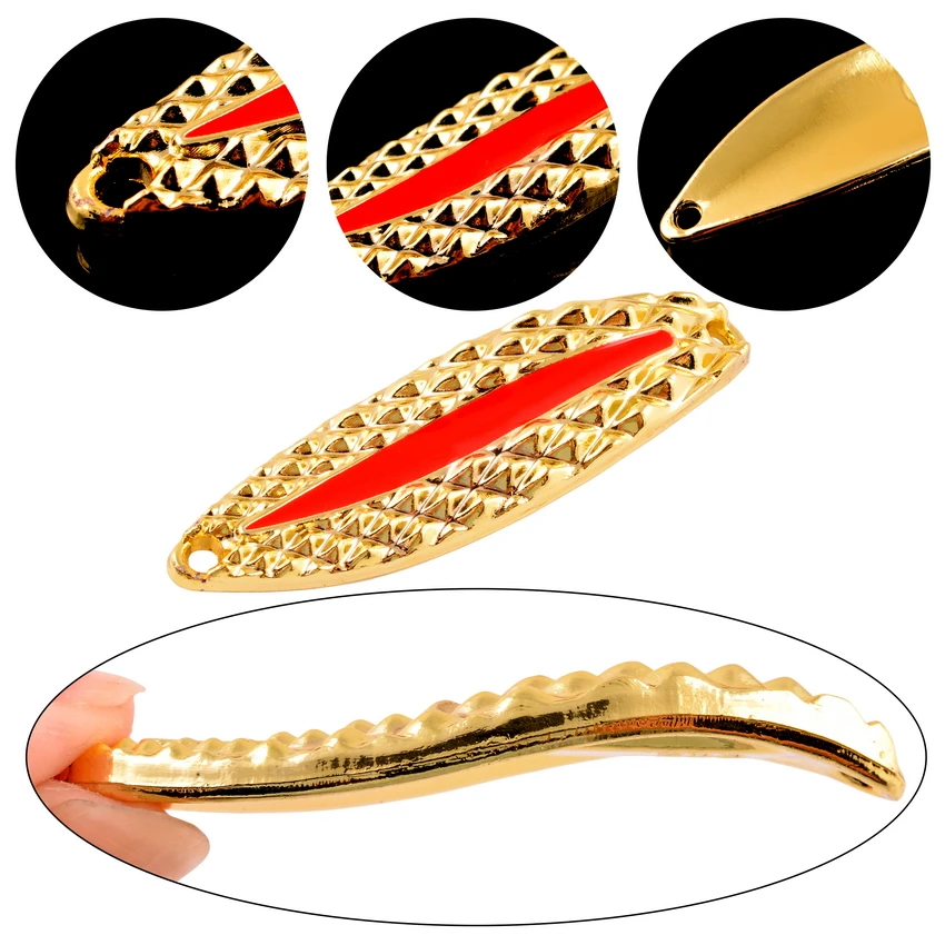 Характеристика: Тип приманки: светящаяся металлическая блеснаВес: 5g/7 г/10 г/1 5g/20 гДлина: 4 см/4,5 см/5 см/5,7 см/6,1 смМатериал: цинковый сплавЦвет: Золотой/Серебряный Количество упаковки:4 * рыболовные приманки