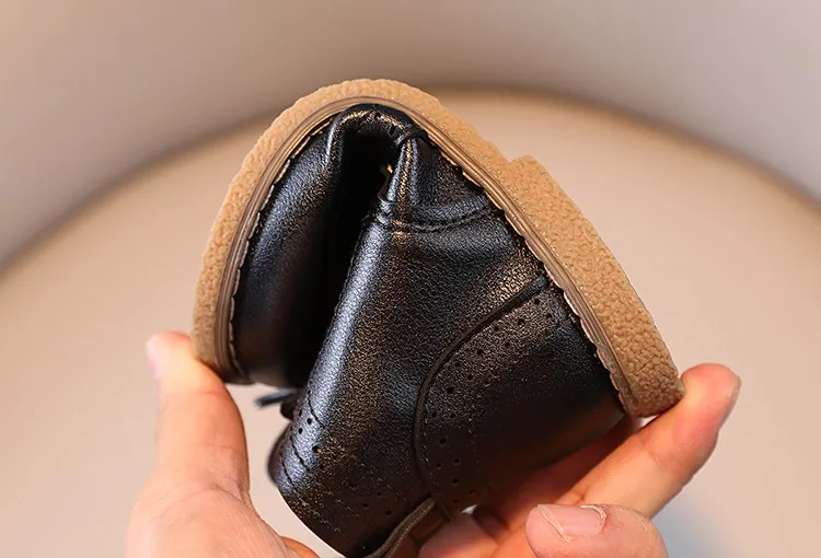 Детские зимние плюшевые ботинки из искусственной кожи, однотонные Т...