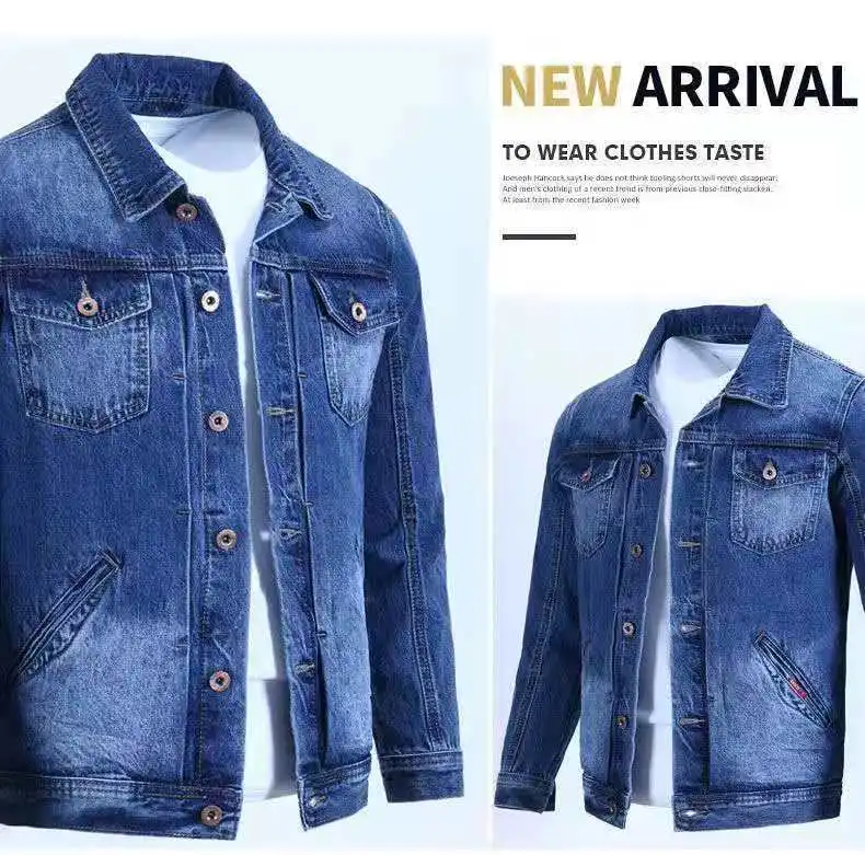 Мужская однобортная джинсовая куртка, повседневная однотонная куртка с отложным воротником, осенняя облегающая качественная одежда, 2021