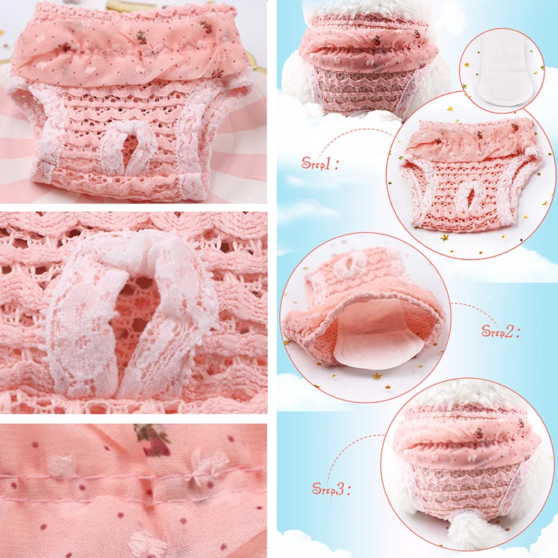 Подгузники для домашних животных, физиологические штаны, гигиенические трусики, моющиеся Женские шорты, нижнее белье с кружевными краями, брюки для домашних животных