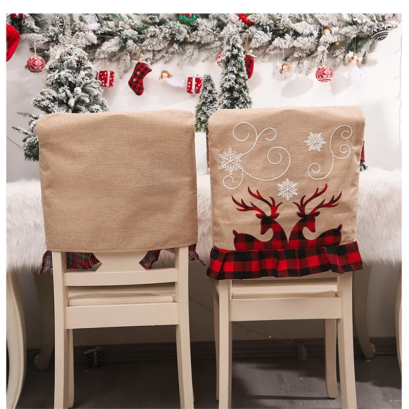 Рождественское украшение, льняной чехол с вышивкой стул с изображен...