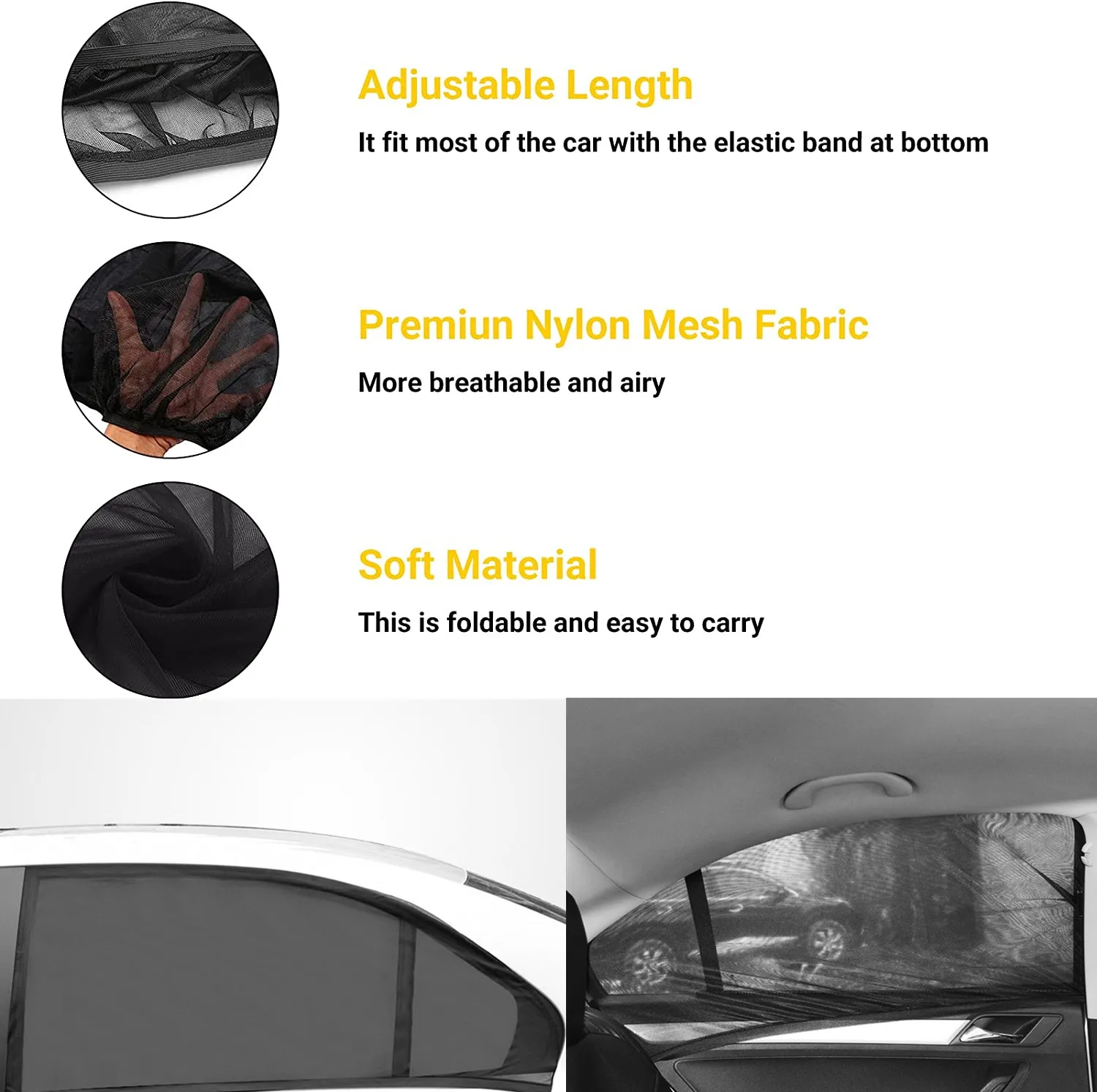 Автомобильные оконные экраны, чехлы для дверей, универсальные боковые автомобильные солнцезащитные оконные оттенки для детей, сетчатые рукава, автомобильная москитная сетка для кемпинга, блокировка конфиденциальности, затемнение для авто, задняя часть