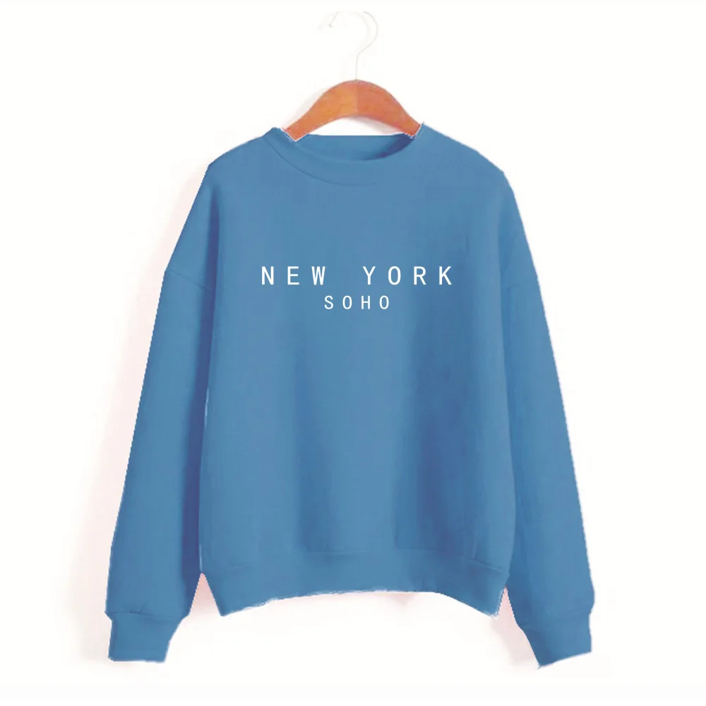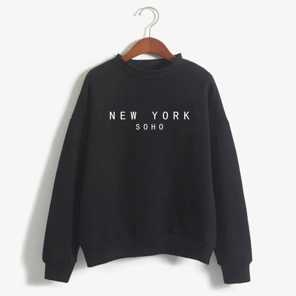 Женский свитшот с надписью NEW YORK SOHO, повседневный Забавный Топ для леди, хипстерский, черный, белый, серый, Прямая доставка, Нью-Йорк SOHO Lette