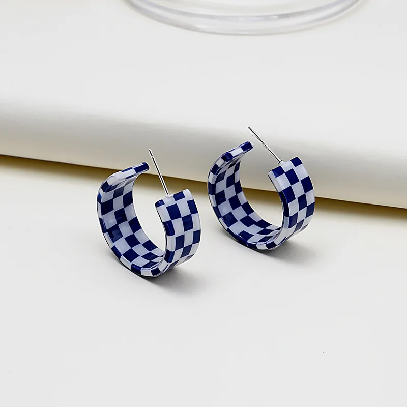 Корейские модные клетчатые серьги-кольца для женщин, винтажные цветные акриловые C формы Ins, универсальные серьги для девочек, ювелирные изделия, подарок