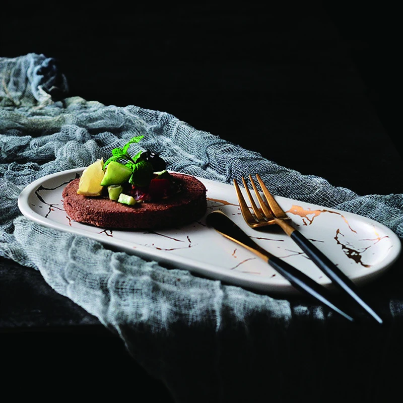Черные керамические обеденные тарелки мраморный поднос фруктовый салат десерт Суши набор столовой посуды для кухни рождественские тарелки сервировочные подносы