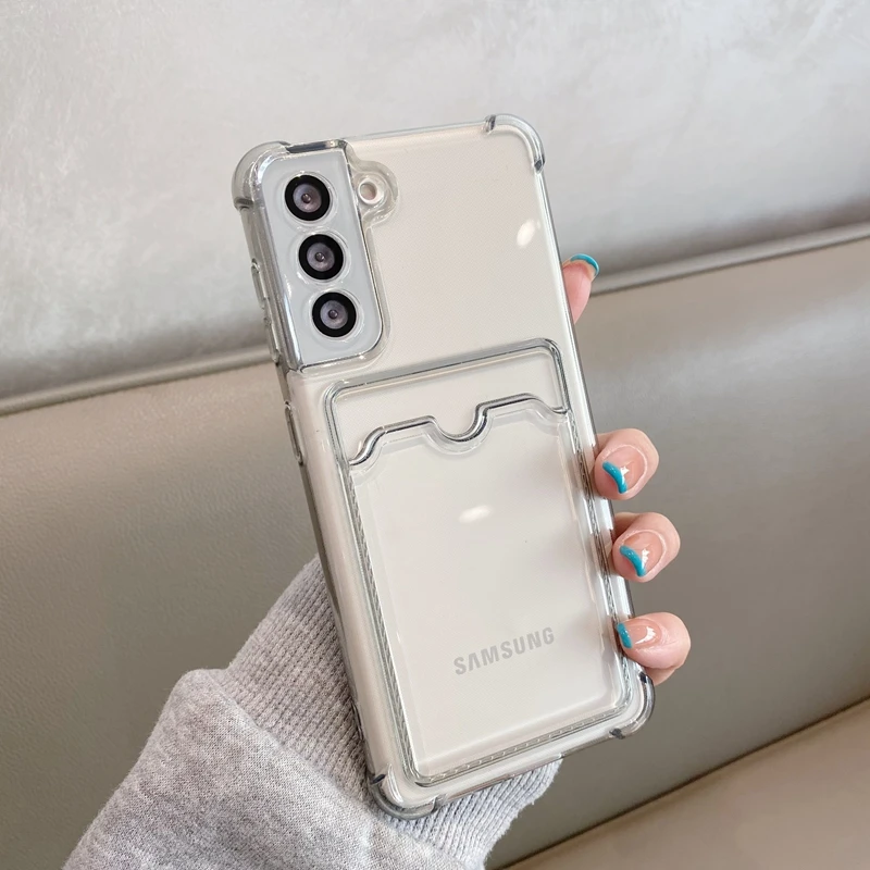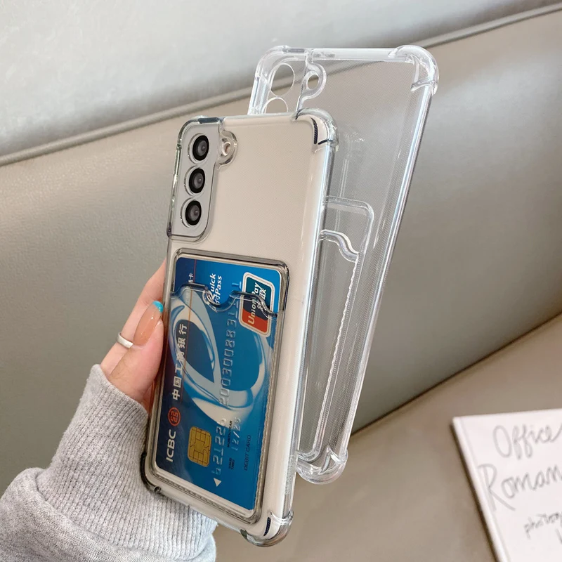 Прозрачный чехол-кошелек с держателем для карт для Samsung Galaxy S21 S20 FE Ultra S10E A12 A22 A32 A42 A52 A72 A02 M02 Note 20 10 9 8, мягкий чехол