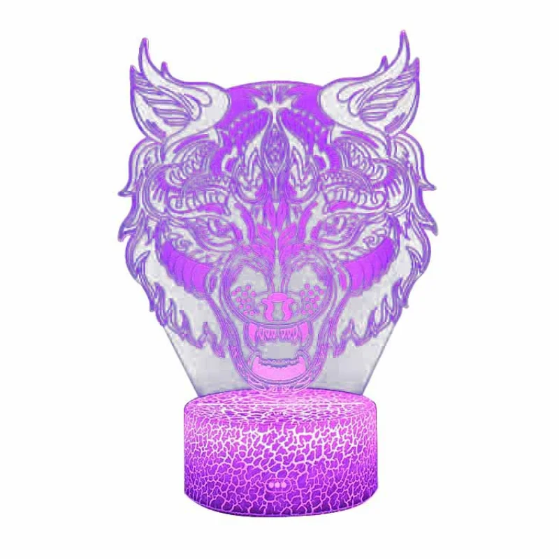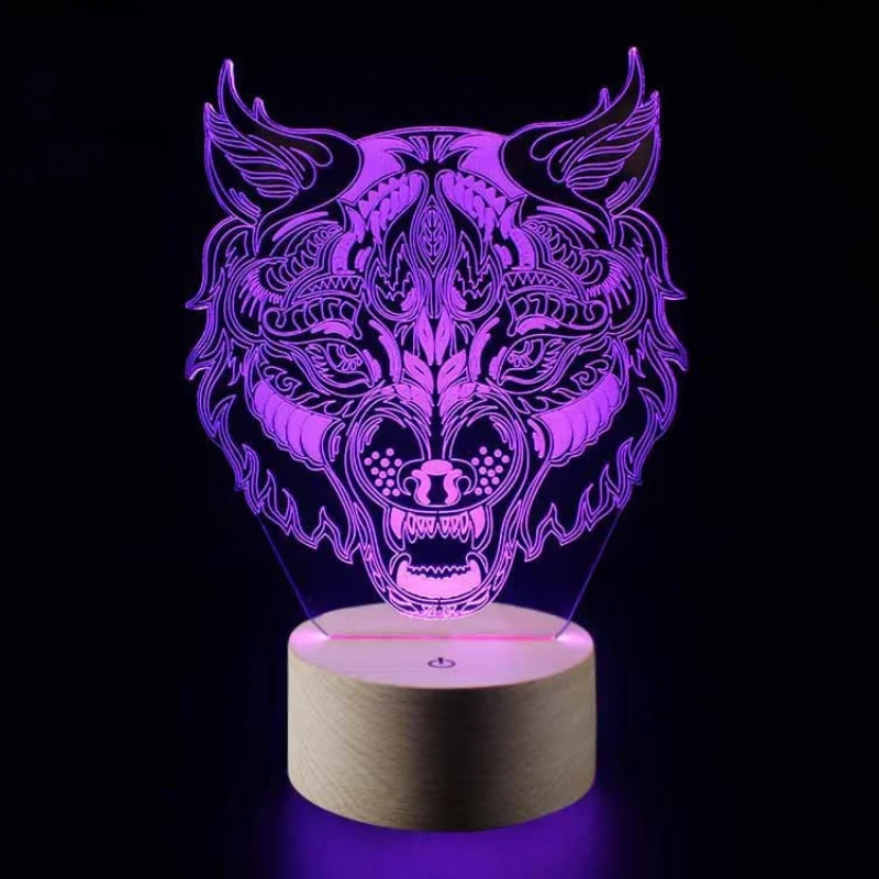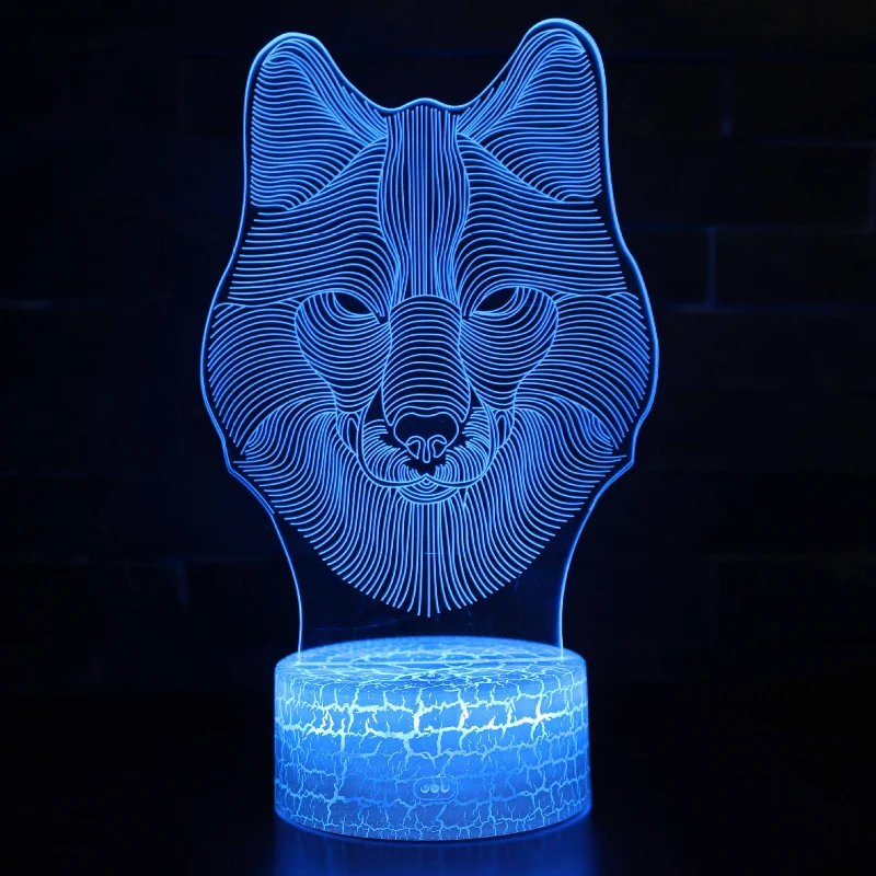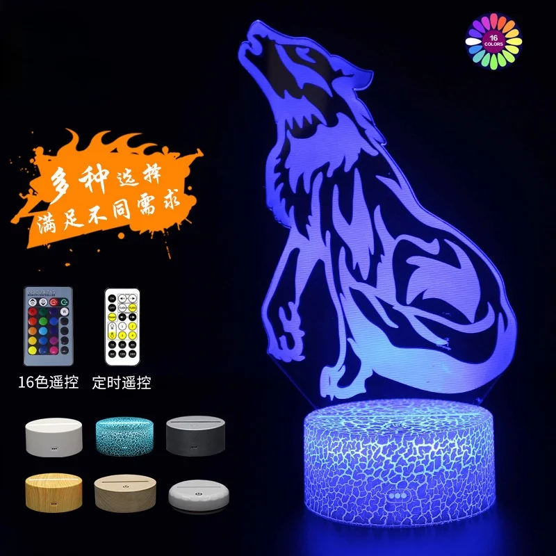 Ночсветильник с 3D изображением животного, волка, светодиодная иллюзионная лампа, умная Настольная лампа с дистанционным управлением, 16 цветов, украшение, подарок на Рождество