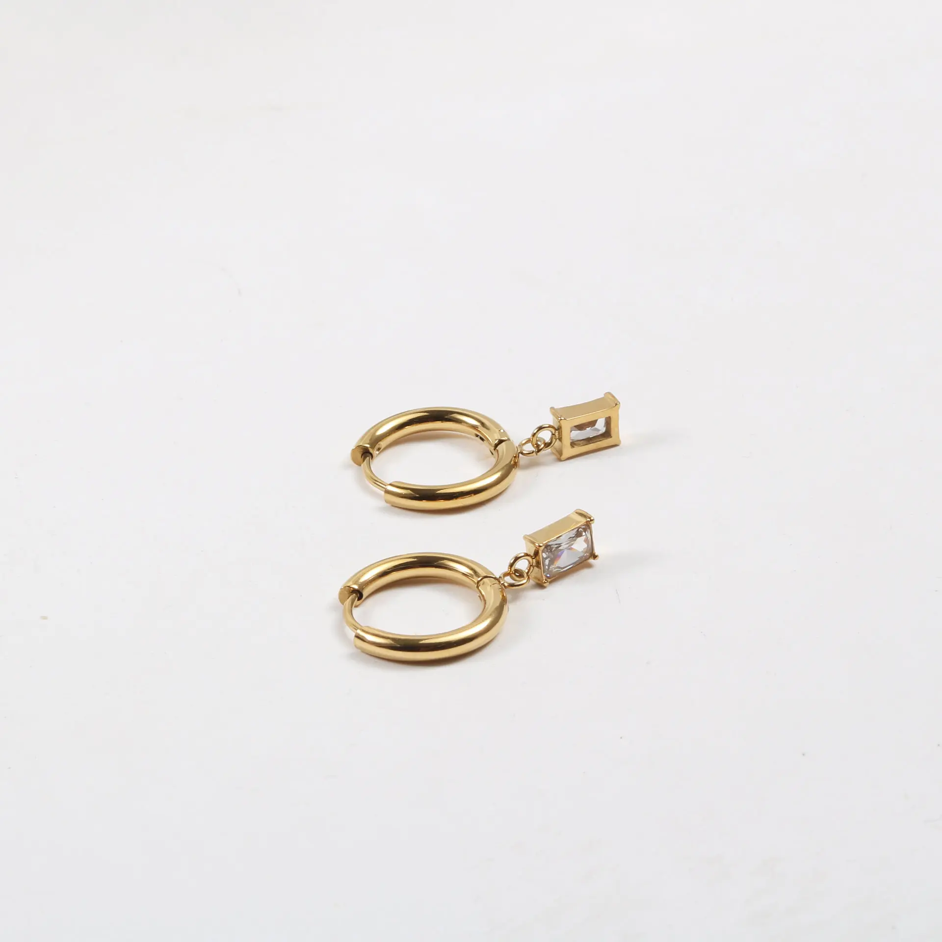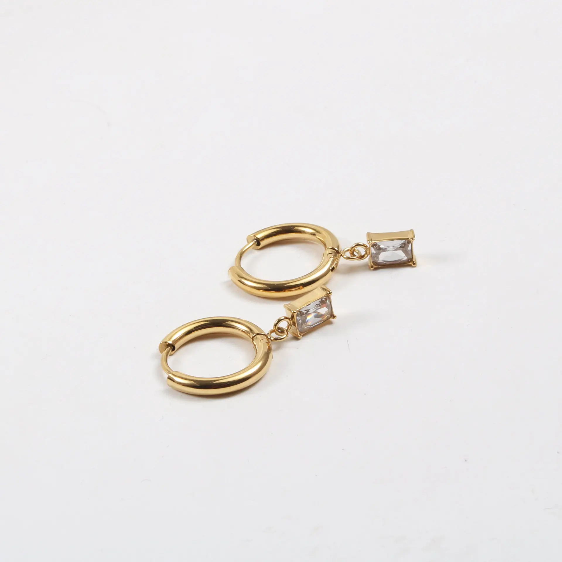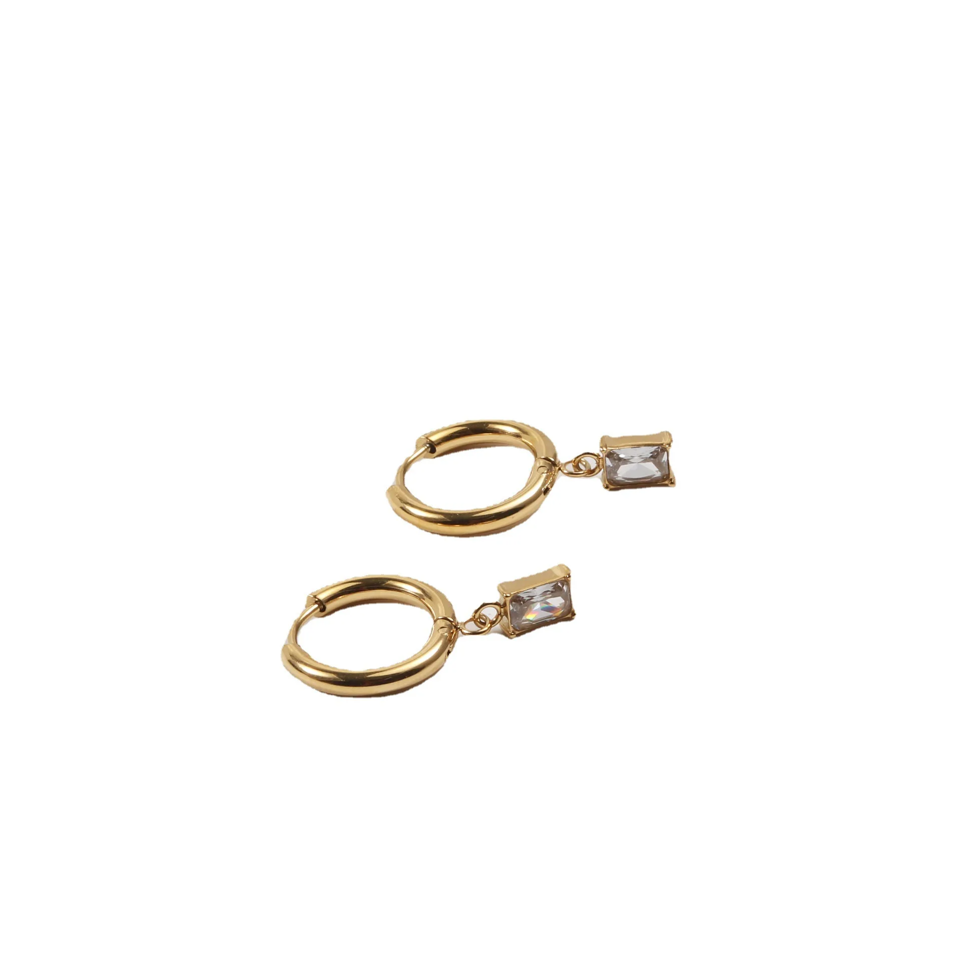 Водонепроницаемые и не тускнеющие, минималистичные, с PVD-покрытием, модные квадратные циркониевые серьги, ювелирные изделия из нержавеющей стали