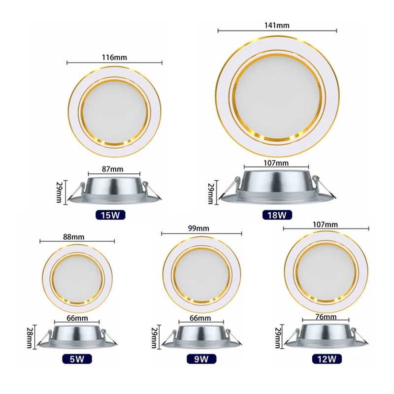 Светодиодный потолочный светильник 5 Вт, 9 Вт, 12 Вт, 15 Вт, 18 Вт, 6 шт.лот, встраиваемый потолочный светильник, AC 220 В, 230 В, 240 в, круглый светодиодный светильник
