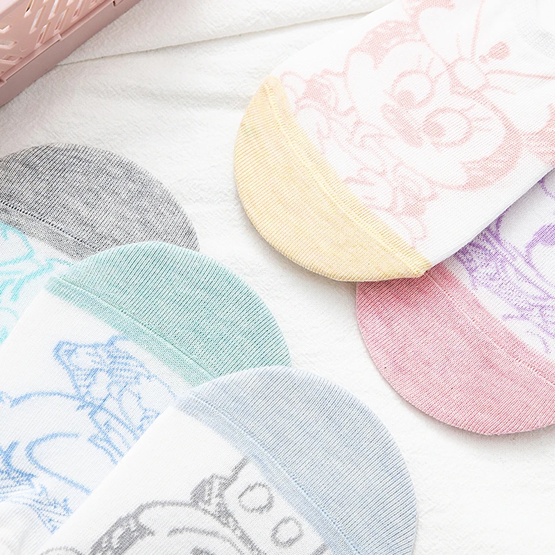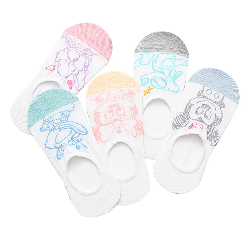 Носки женские хлопковые, невидимые, с изображением медведя и мыши, ...