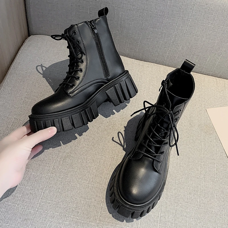 Женские ботильоны на платформе, повседневные мотоциклетные ботинки ...