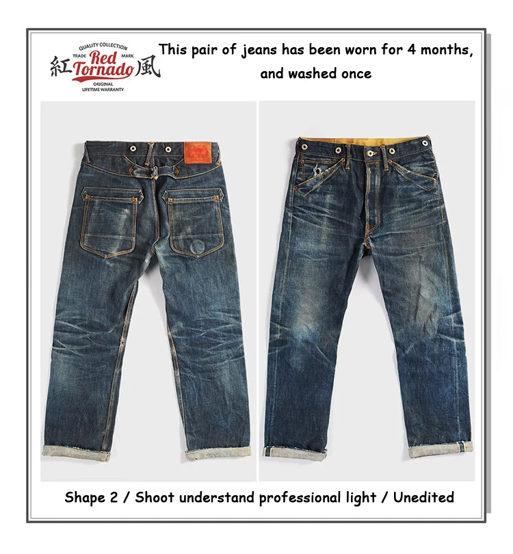 Красный Торнадо кузнеца с пряжкой сзади джинсы 16,5 oz сырой кромка джинсы прямые