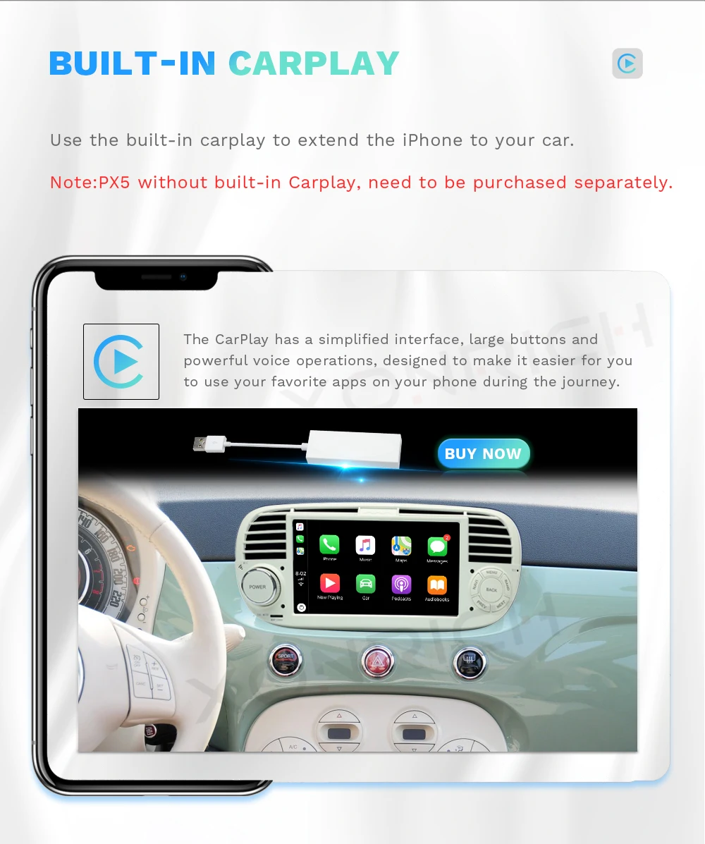 Carplay Android 11 4 ГБ 64 ГБ 1 Din Автомобильный мультимедийный плеер для FIAT 500 GPS-навигация стерео аудио радио головное устройство 8 ядер без DVD